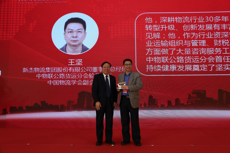 近日在北京舉行的2017年中國物流與采購聯合會 公路貨運行業(yè)年會中, 新杰物流執(zhí)行董事-王堅,被評選為2017年,年度貢獻人物獎。